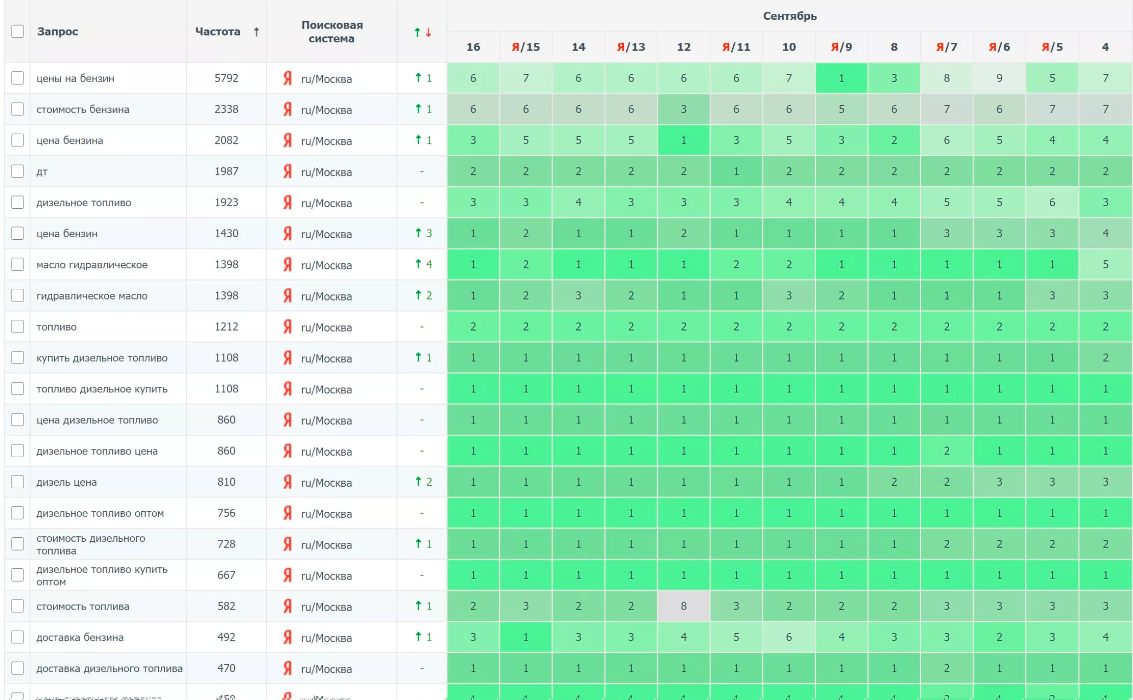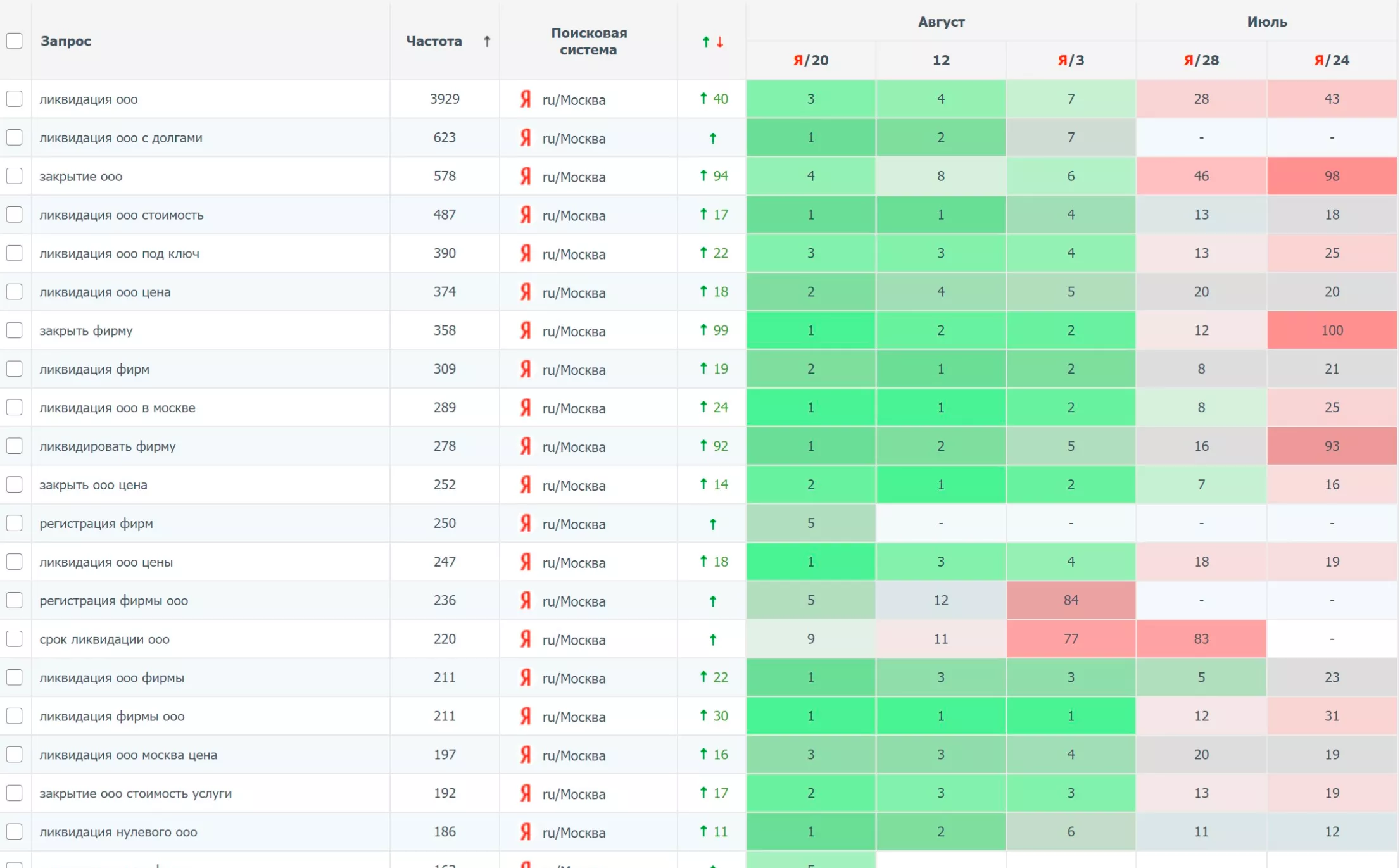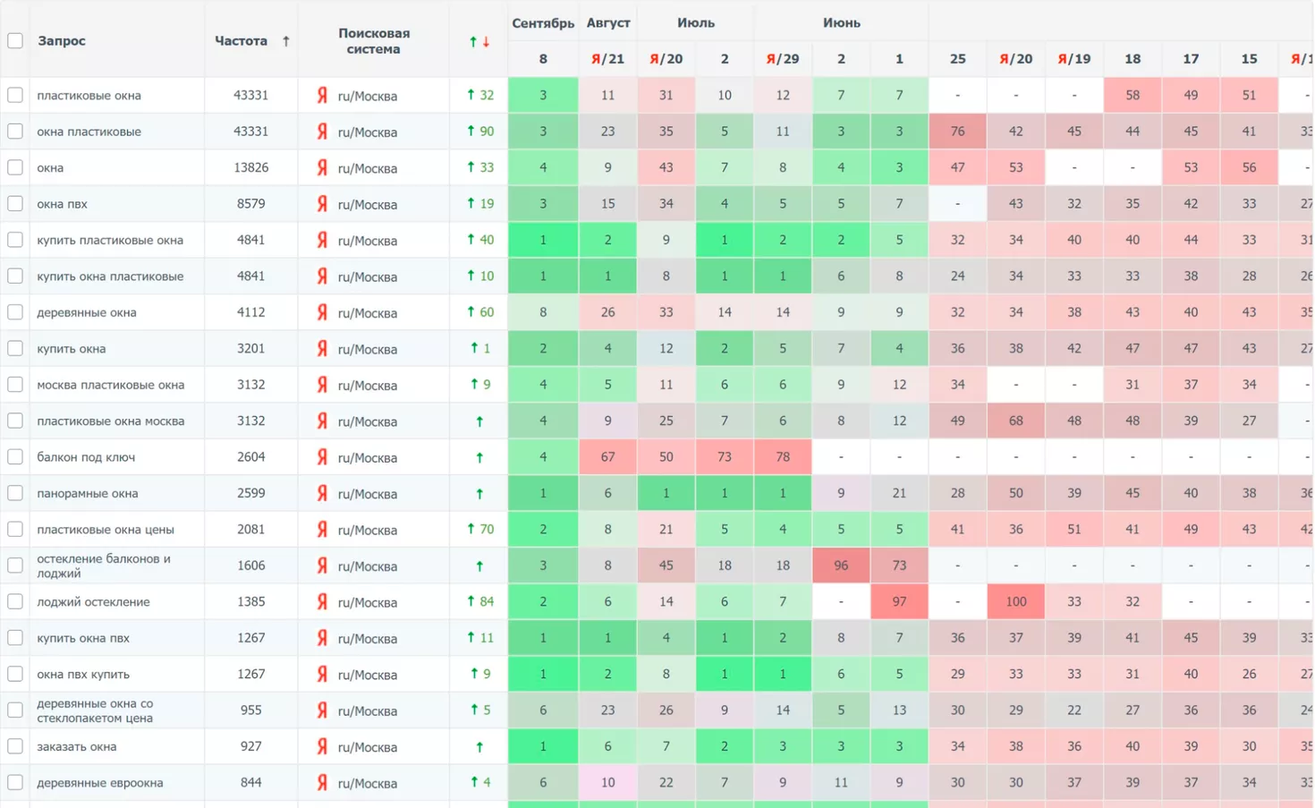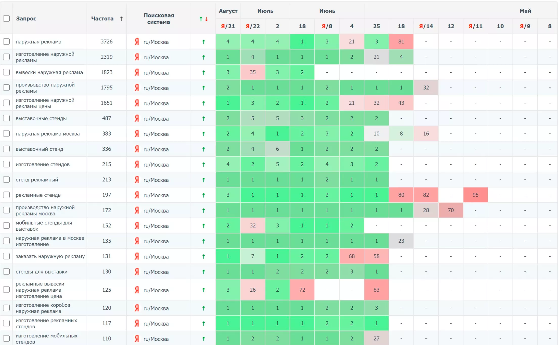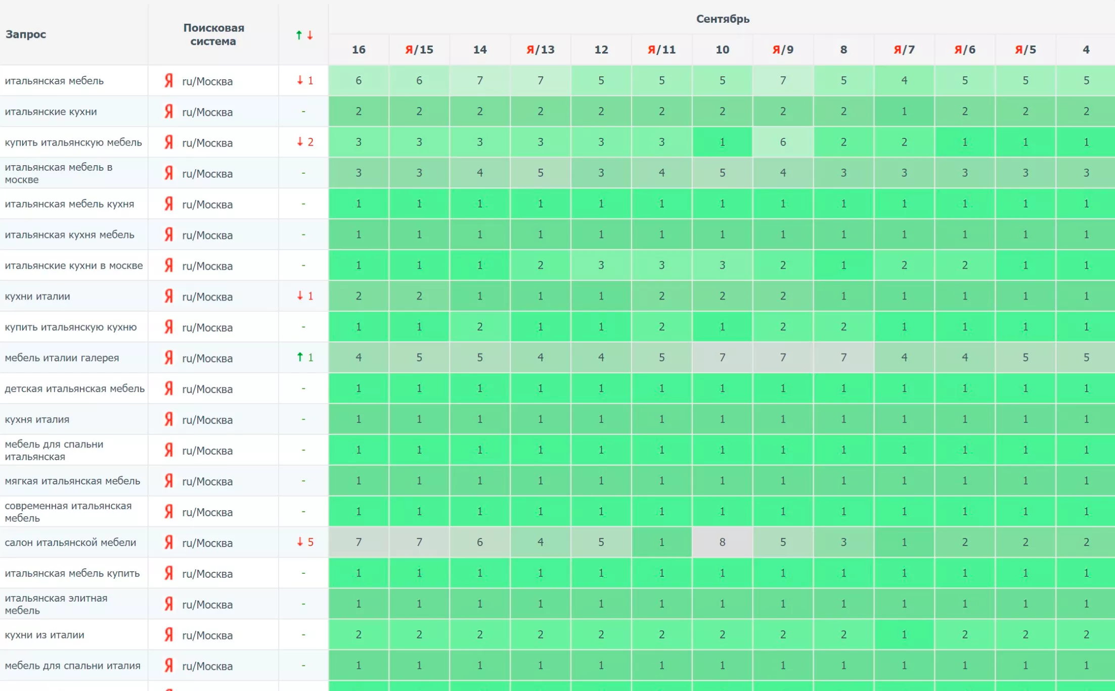 • Ежедневный мониторинг видимости сайта (снятие позиций)